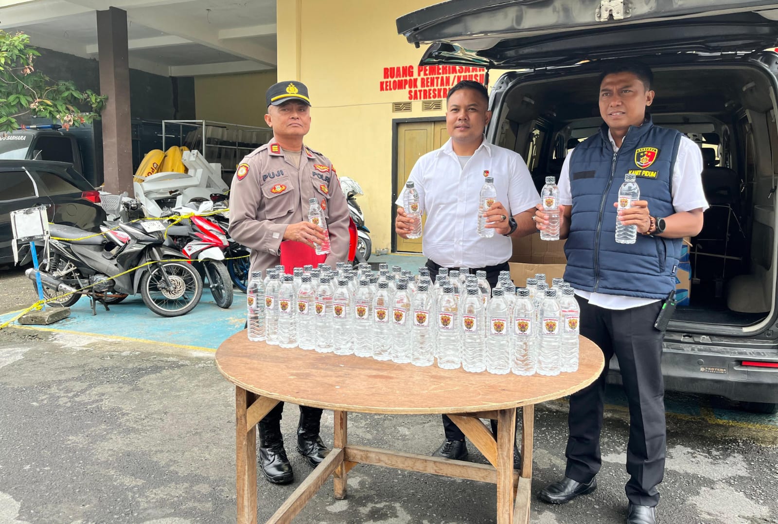 Dalam pengungkapan tersebut, polisi mengamankan seorang pria berinisial MW (23) asal Kabupaten Sumenep beserta satu unit mobil Daihatsu Luxio warna abu-abu metalik yang digunakan untuk mengangkut miras.