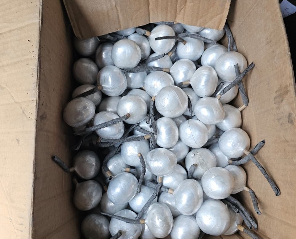 Dalam penggerebekan itu, polisi menyita barang bukti dalam jumlah besar, di antaranya ribuan mercon berbagai jenis, hampir 6 kilogram bubuk mesiu, puluhan petasan sreng dor, serta satu balon udara yang diduga akan digunakan bersamaan dengan petasan. Selain itu, turut diamankan perlengkapan produksi seperti sumbu, arang halus, alat timbang, alat potong, dan kertas pembungkus.