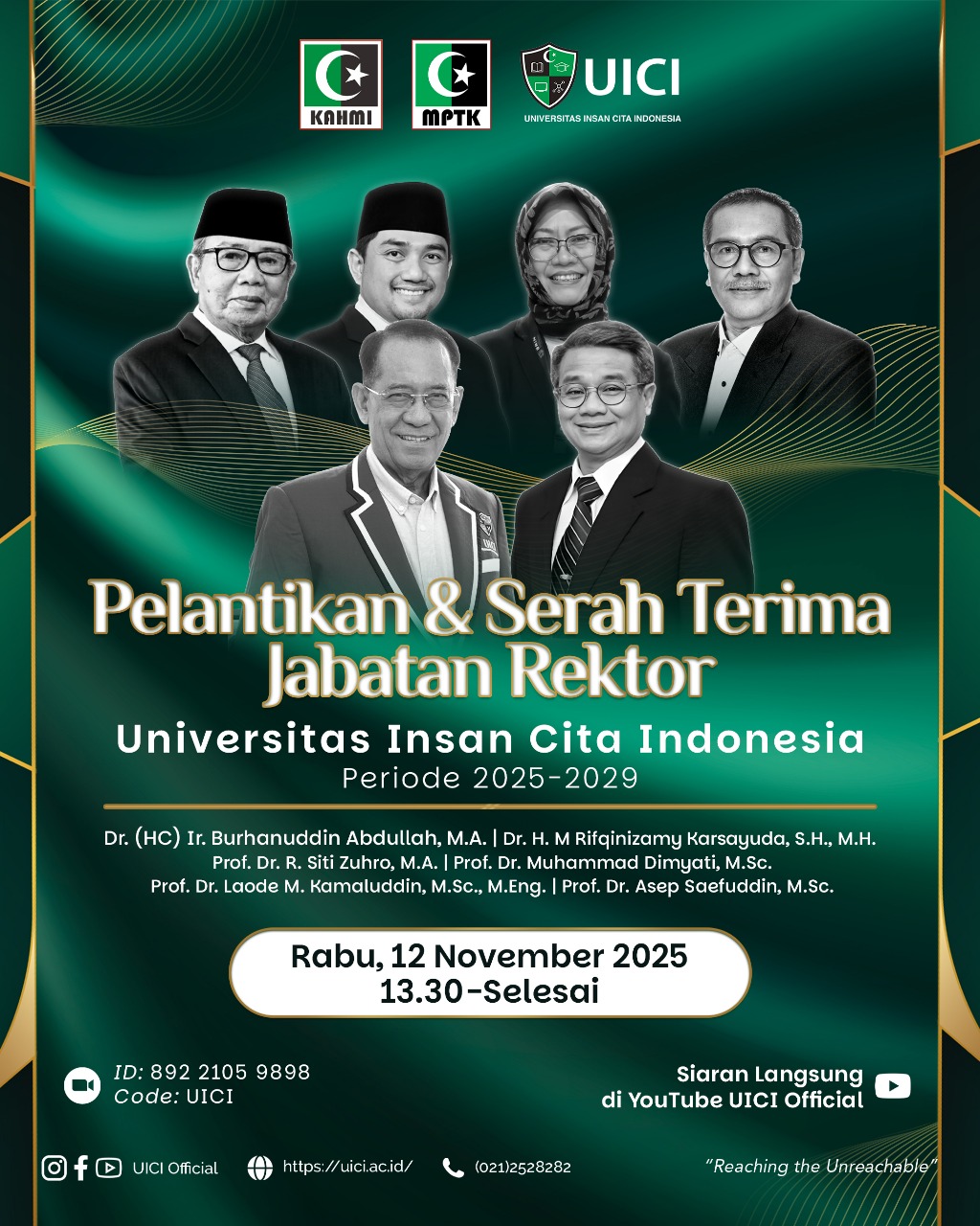 Sebagai pengganti, Prof. Asep Saefuddin akan dilantik sebagai Rektor UICI periode 2025–2029 pada Rabu, 12 November 2025.
