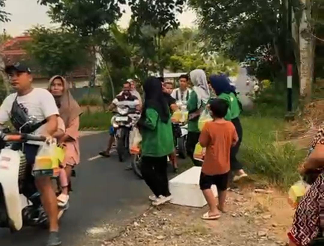 Bagi-bagi takjil itu dilakukan di penghujung Ramadan tepatnya di jalan raya Desa Karang Cempaka, Kecamatan Bluto, Kabupaten Sumenep, pada hari Rabu, 18 Maret 2026.