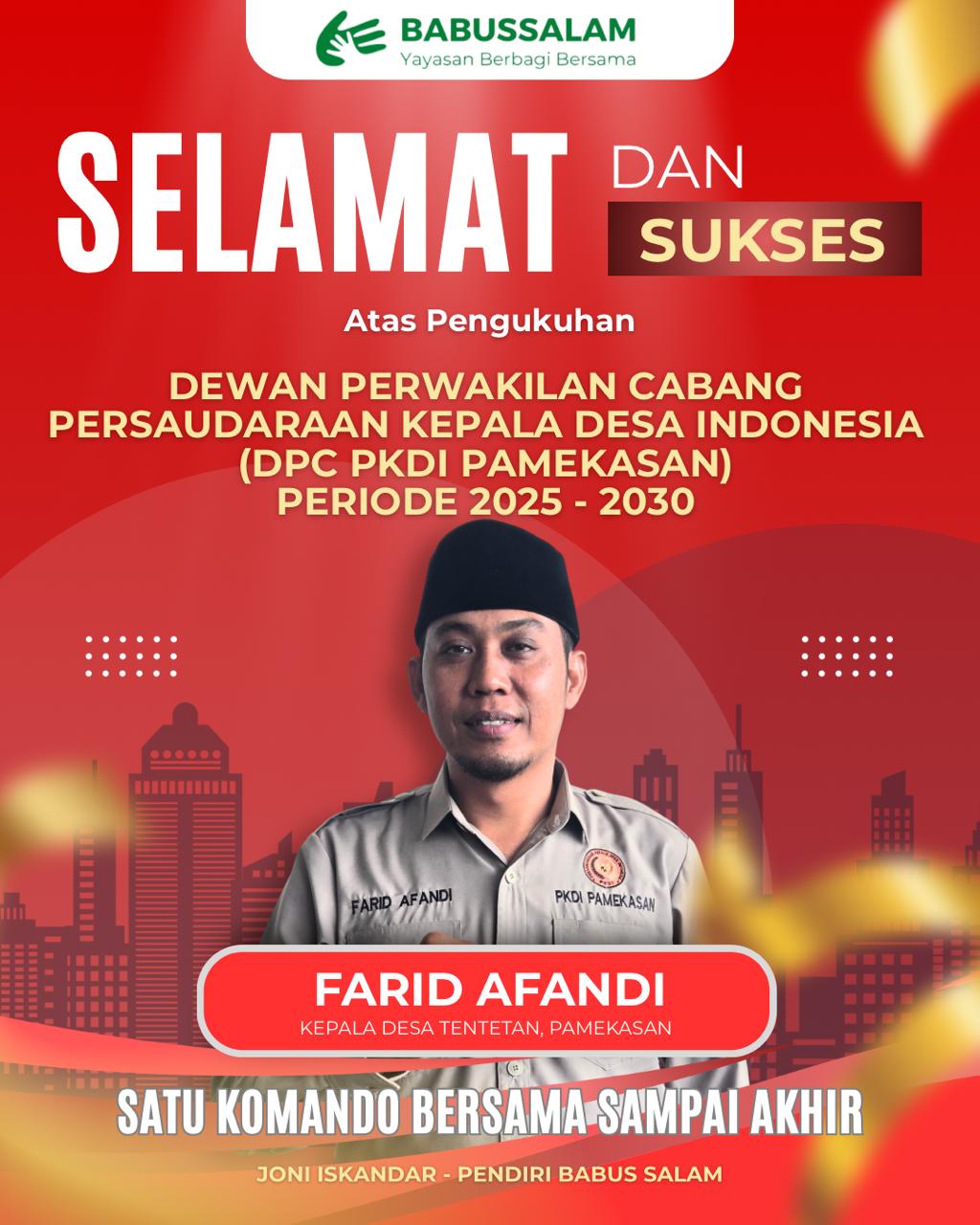 “Kami dari Yayasan Babus Salam menyampaikan selamat dan sukses atas terbentuknya DPC PKDI Pamekasan. Semoga kehadiran organisasi ini menjadi energi baru bagi para kepala desa untuk memperkuat kolaborasi dan memperjuangkan kemajuan desa,” ujar Joni Iskandar usai acara pengukuhan.